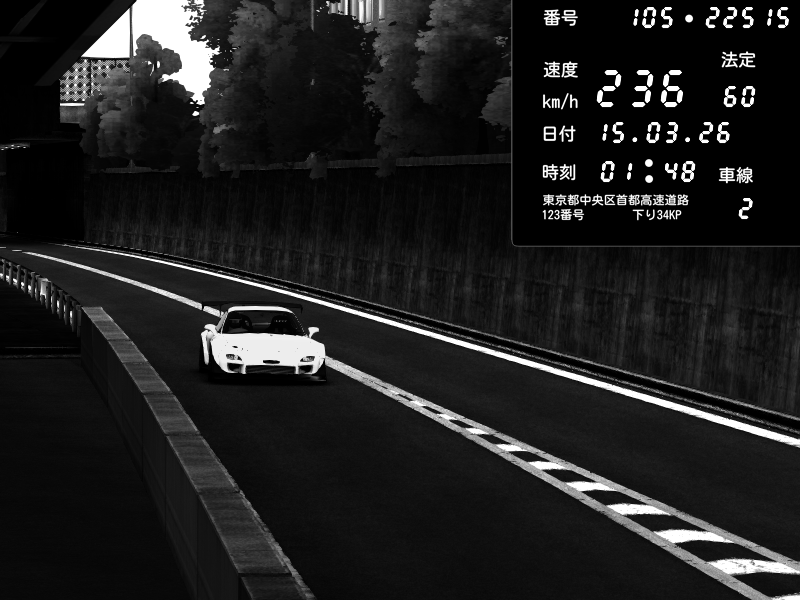 | 2026/03/15 01:48 | C1外回り 京橋 | 236 / 60 km/h | Mazda RX-7 FD3S FEED Afflux GT3 | CAPTURE |