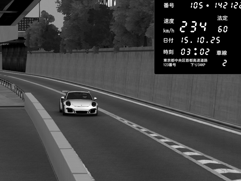 2025/10/15 03:02 | C1外回り 京橋 | 234 / 60 km/h | Porsche 911 GT3 RS | CAPTURE |