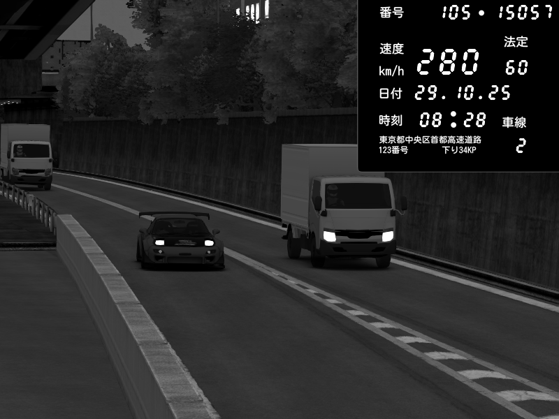 | 2025/10/29 08:28 | C1外回り 京橋 | 280 / 60 km/h | Mazda RX-7 FD3S FEED Afflux GT3 | CAPTURE |