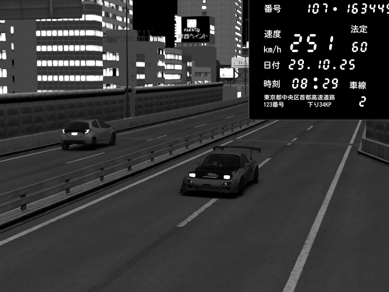 | 2025/10/29 08:33 | C1外回り 新富町 | 163 / 60 km/h | Mazda RX-7 FD3S FEED Afflux GT3 | CAPTURE |