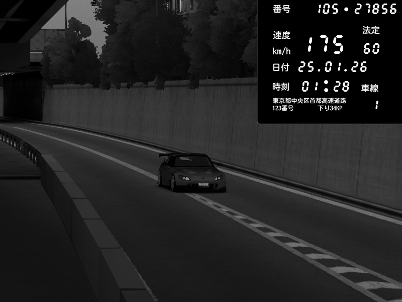 | 2026/01/25 01:28 | C1外回り 京橋 | 175 / 60 km/h | Honda S2000 (AP2 - Legendary) | CAPTURE |