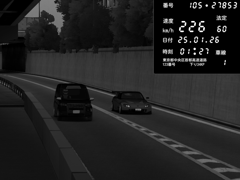 | 2026/01/25 01:27 | C1外回り 京橋 | 226 / 60 km/h | Honda S2000 (AP2 - Legendary) | CAPTURE |