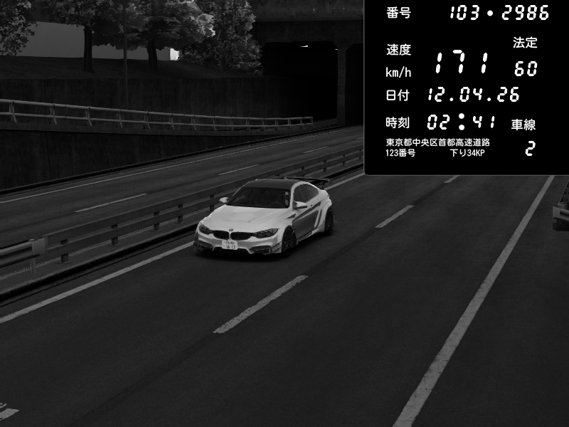 | 2026/04/12 02:41 | C1内回り 銀座 | 171 / 60 km/h | BMW M4 crash.Sp Varis Widebody | CAPTURE |