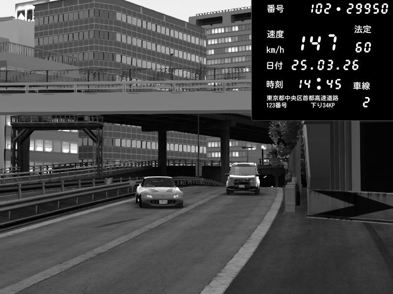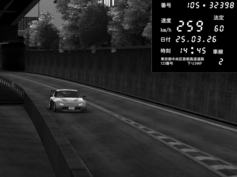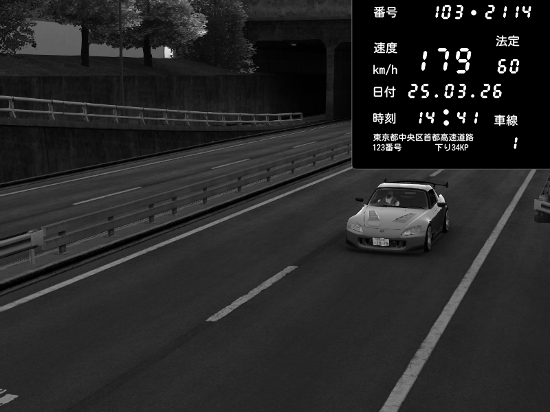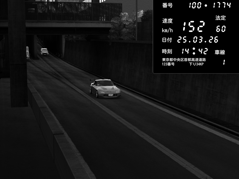 | 2026/03/25 14:45 | C1外回り 新富町 | 147 / 60 km/h | Honda S2000 (AP2 - Legendary) | CAPTURE |