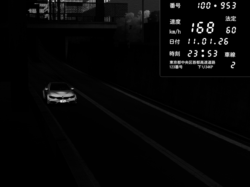 | 2026/01/11 23:53 | C1内回り 京橋 | 168 / 60 km/h | BMW M4 crash.Sp Varis Widebody | CAPTURE |