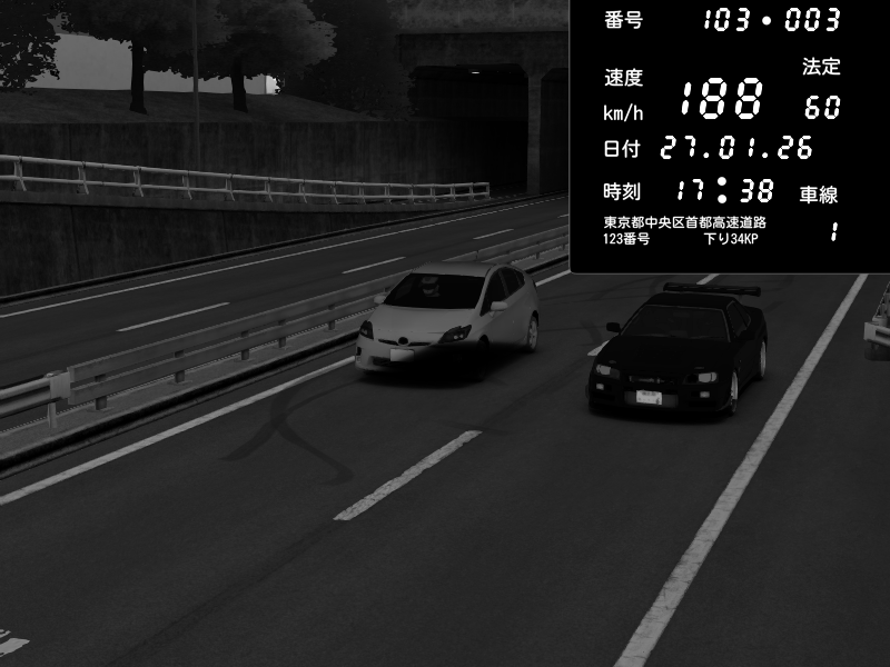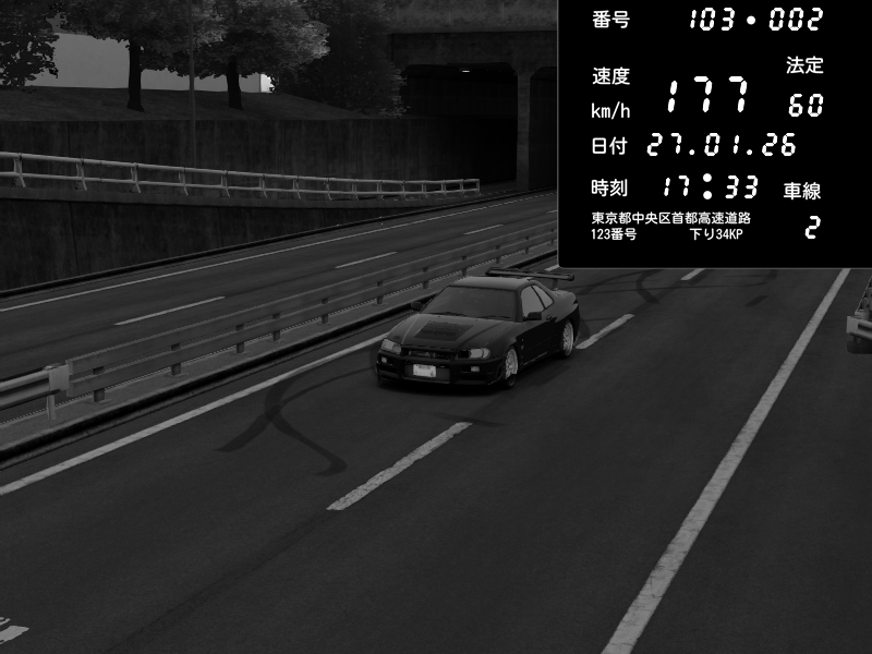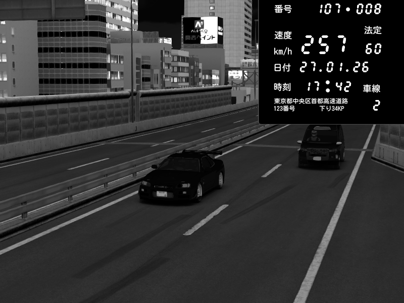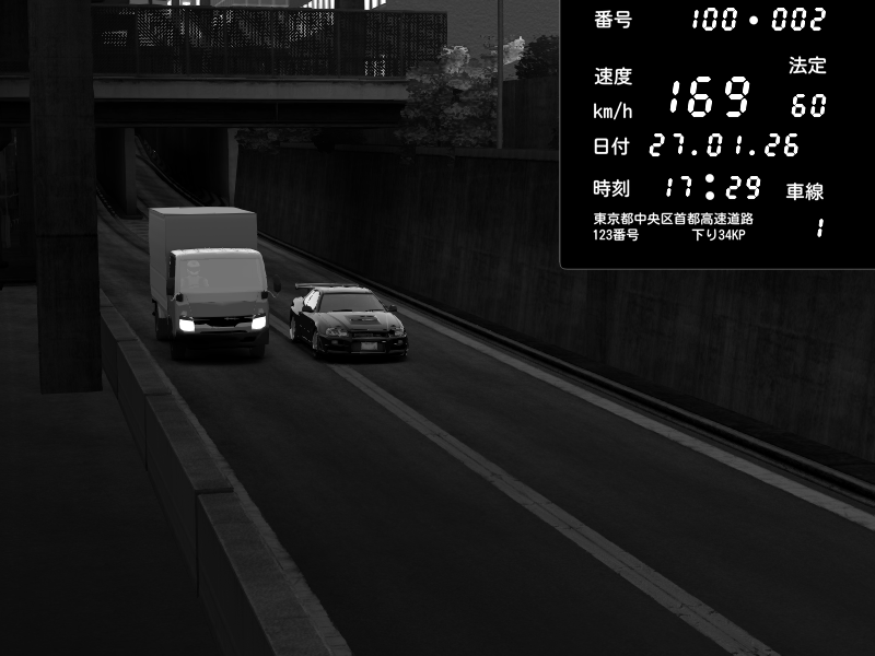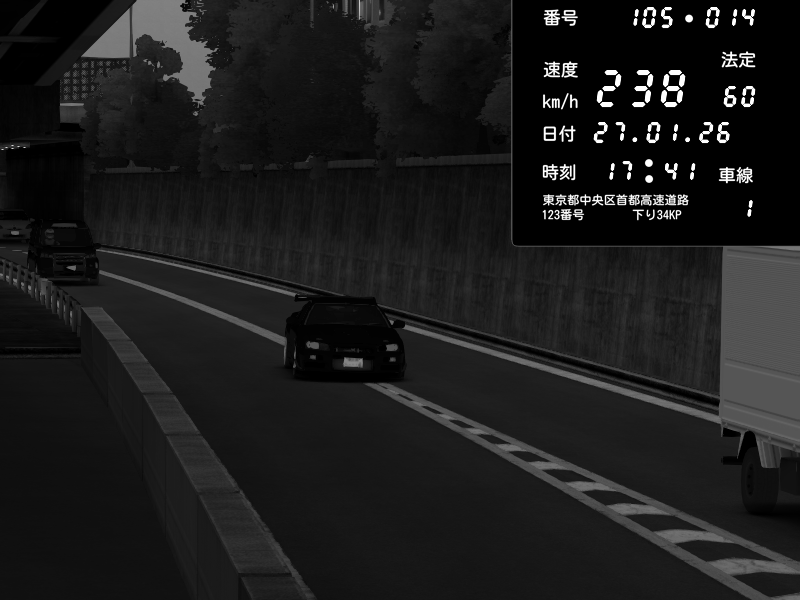 | 2026/01/27 17:38 | C1内回り 銀座 | 188 / 60 km/h | Nissan Skyline GT-R R34 Nismo Omori Factory S1 | CAPTURE |