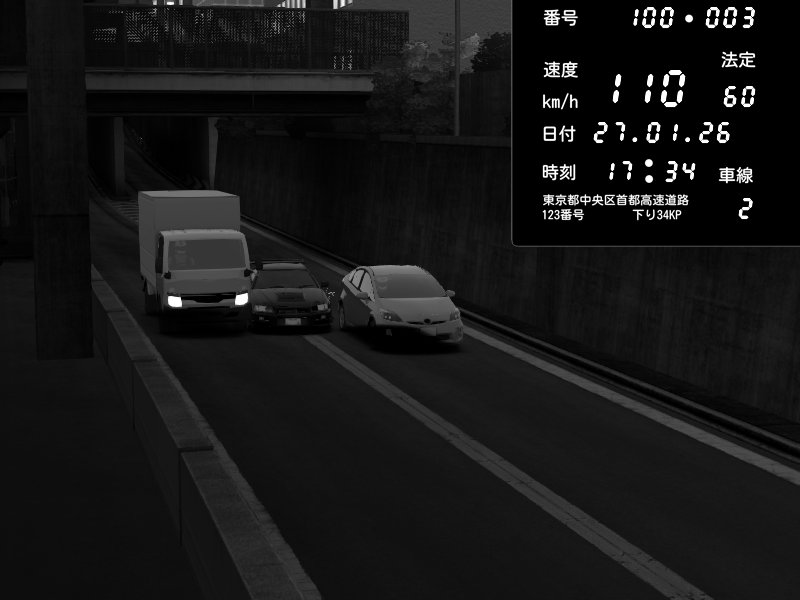 | 2026/01/27 17:34 | C1内回り 京橋 | 110 / 60 km/h | Nissan Skyline GT-R R34 Nismo Omori Factory S1 | CAPTURE |