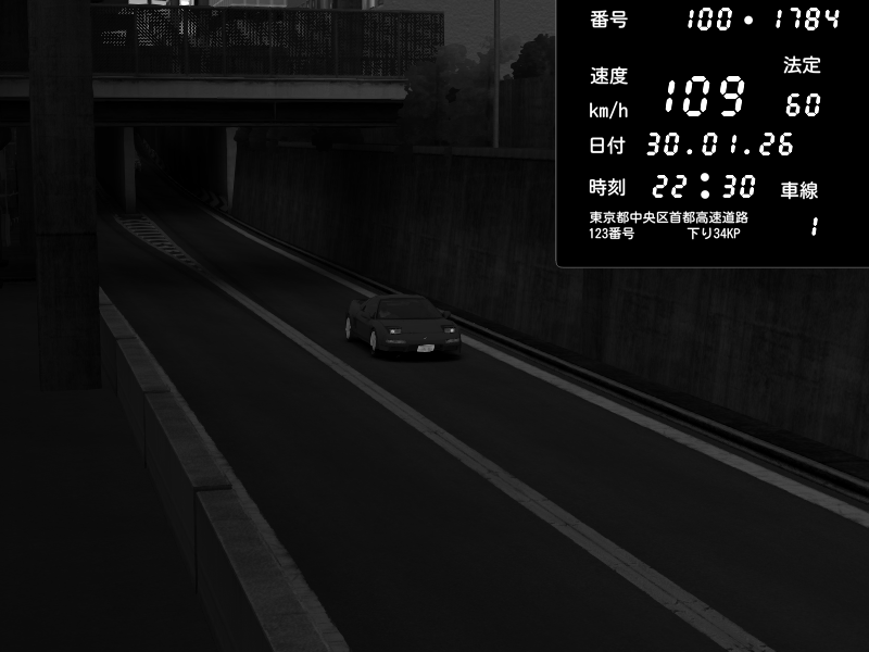 | 2026/01/30 22:31 | C1内回り 竹橋JCT | 125 / 60 km/h | Honda NSX [NA1] PVLSX | CAPTURE |