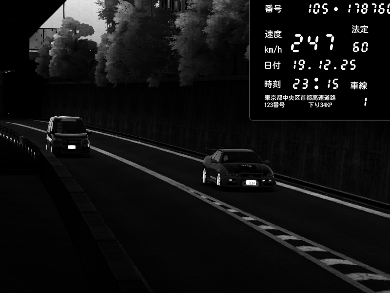 | 2025/12/19 23:22 | C1外回り 新富町 | 144 / 60 km/h | Nissan Skyline GT-R R34 Nismo Omori Factory S1 | CAPTURE |