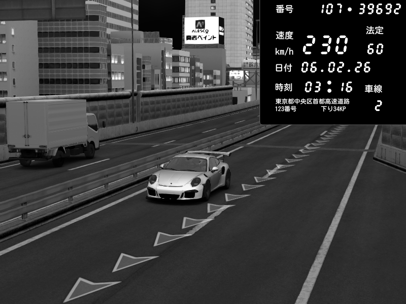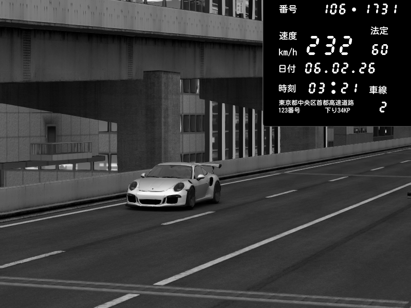 | 2026/02/06 03:29 | C1外回り 京橋 | 262 / 60 km/h | Porsche 911 GT3 RS | CAPTURE |