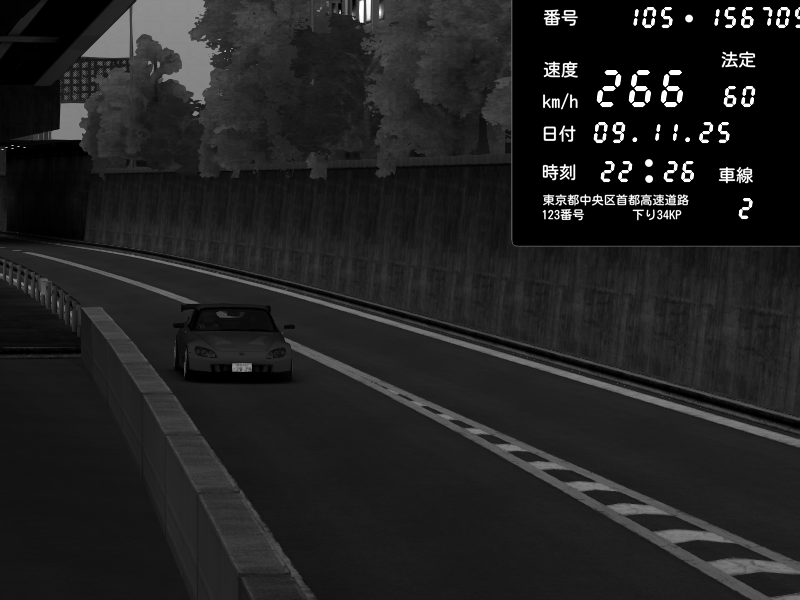 | 2025/11/09 22:26 | C1外回り 京橋 | 266 / 60 km/h | Honda S2000 (AP2 - Legendary) | CAPTURE |