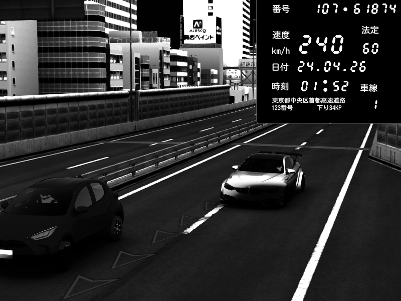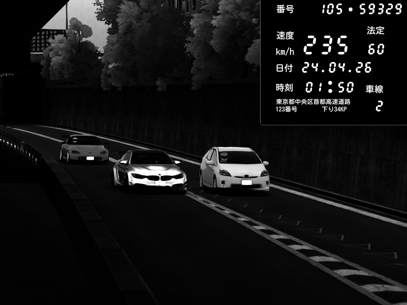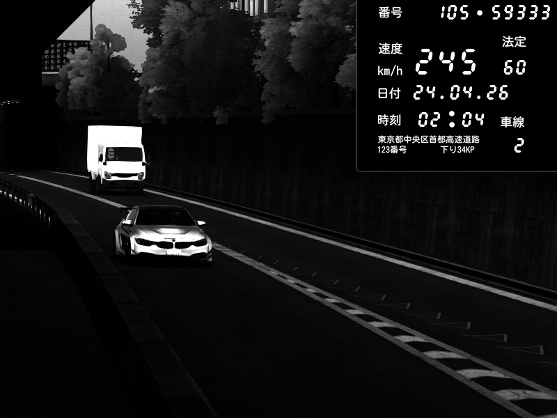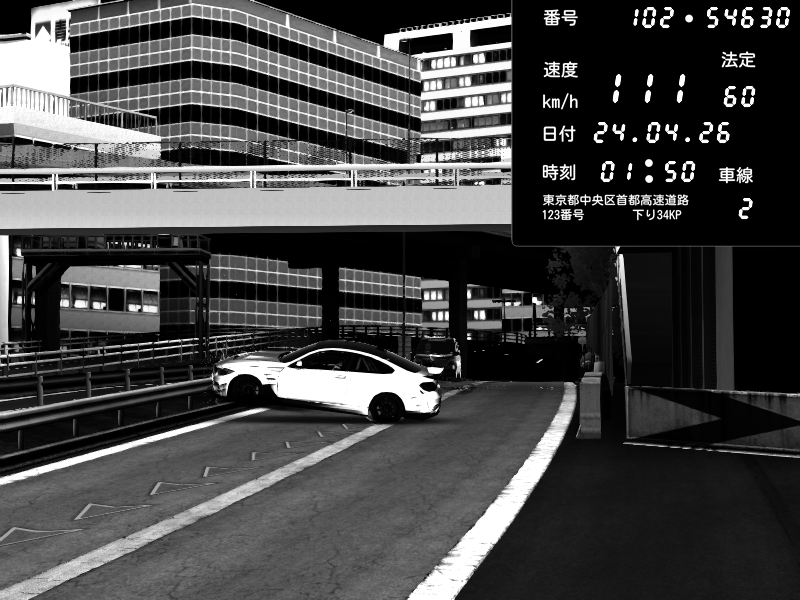 | 2026/04/24 02:04 | C1外回り 新富町 | 100 / 60 km/h | BMW M4 crash.Sp Varis Widebody | CAPTURE |
