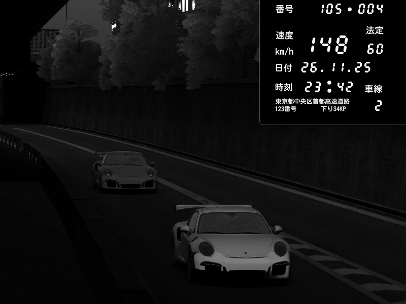 | 2025/11/26 23:42 | C1外回り 京橋 | 148 / 60 km/h | Porsche 911 GT3 RS | CAPTURE |