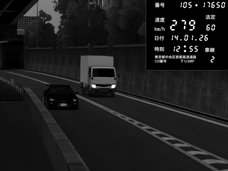 | 2026/01/14 12:55 | C1外回り 新富町 | 111 / 60 km/h | Nissan Skyline GT-R R34 Nismo Omori Factory S1 | CAPTURE |