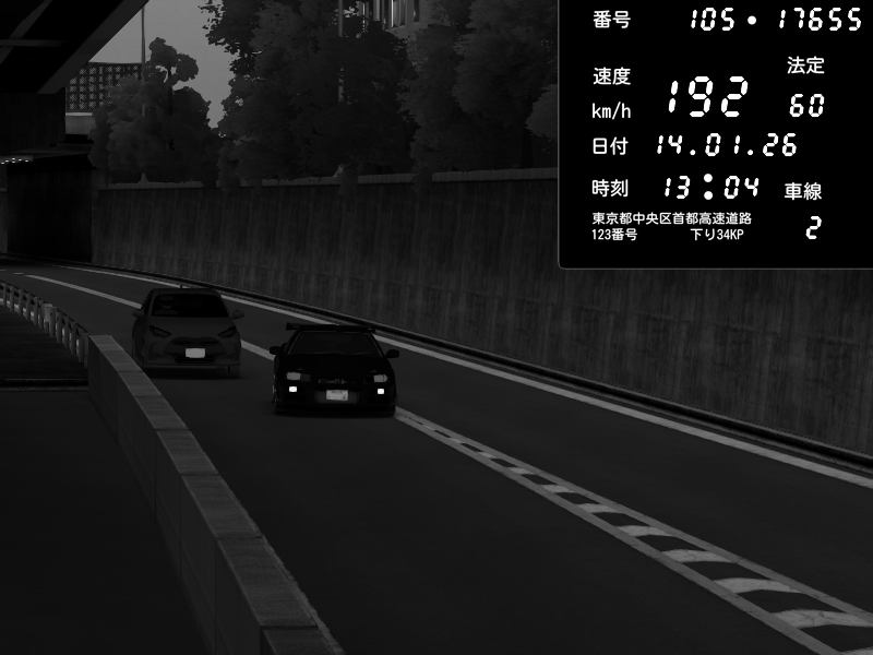 | 2026/01/14 13:04 | C1外回り 新富町 | 186 / 60 km/h | Nissan Skyline GT-R R34 Nismo Omori Factory S1 | CAPTURE |