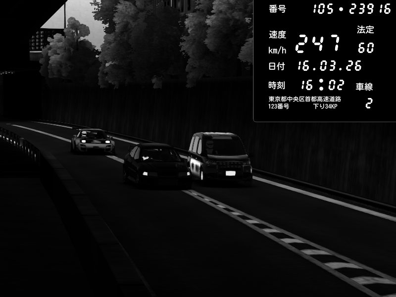 | 2026/03/16 16:10 | C1外回り 新富町 | 151 / 60 km/h | Mitsubishi Lancer Evolution V Wangan Spec | CAPTURE |