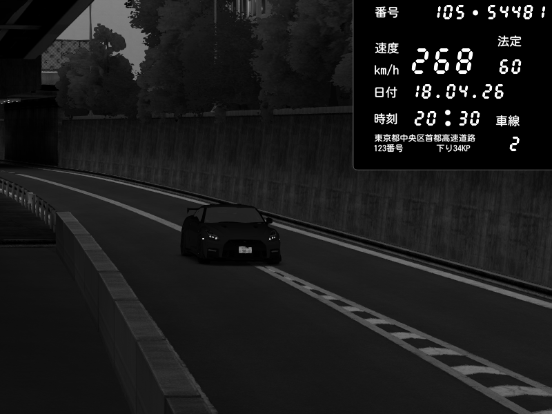 | 2026/04/18 20:22 | C1外回り 京橋 | 264 / 60 km/h | Nissan GT-R NISMO 2017 | CAPTURE |