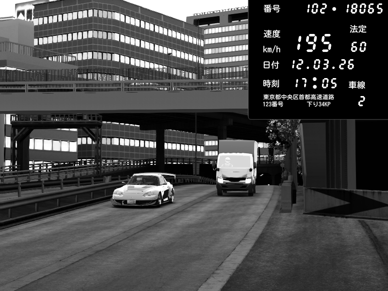 | 2026/03/12 17:05 | C1外回り 新富町 | 195 / 60 km/h | Honda S2000 Turbo GT1 Amuse (AP1) | CAPTURE |