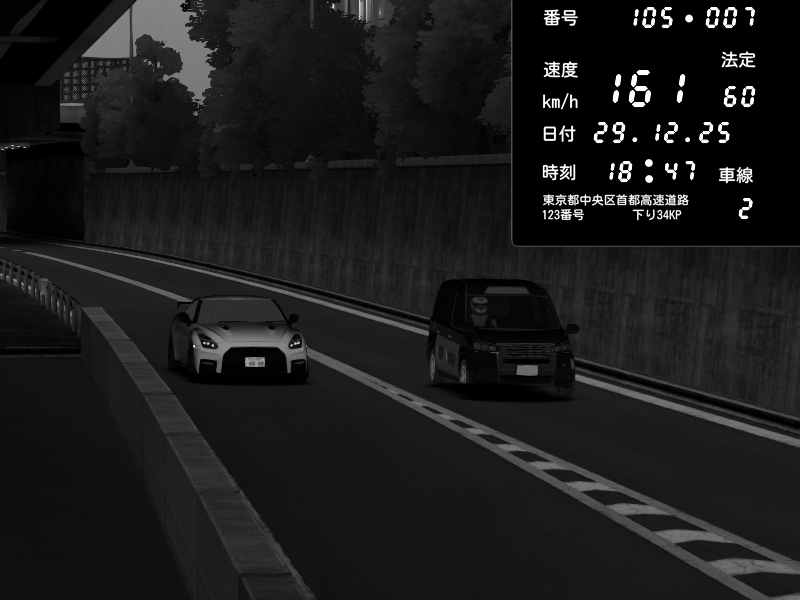 | 2025/12/29 18:42 | C1ε€εγ θε ¬ε | 224 / 60 km/h | Nissan GT-R NISMO 2017 | CAPTURE |