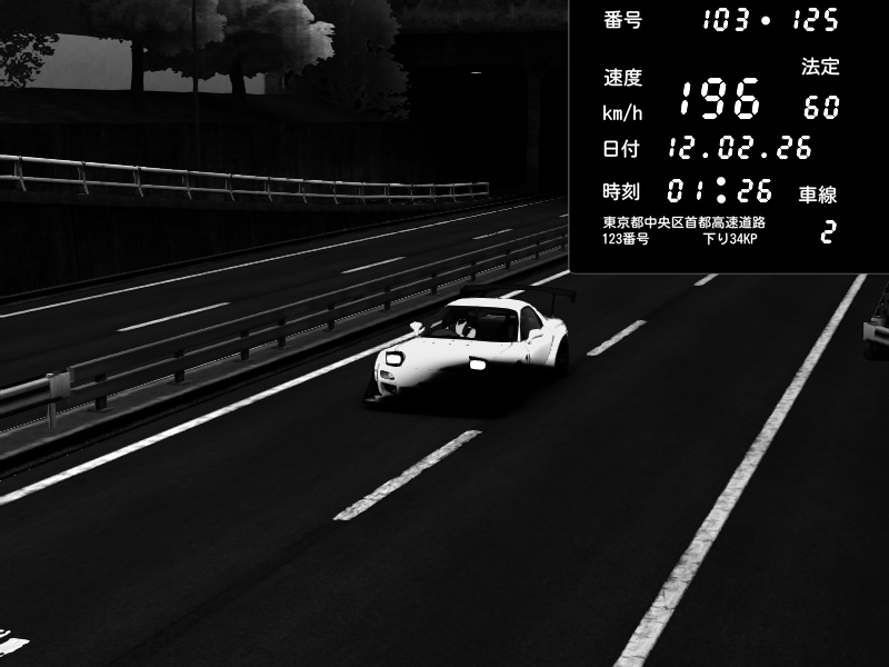 | 2026/02/12 01:26 | C1内回り 銀座 | 196 / 60 km/h | Mazda RX-7 FD3S FEED Afflux GT3 | CAPTURE |