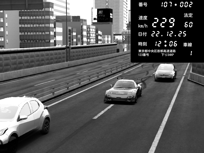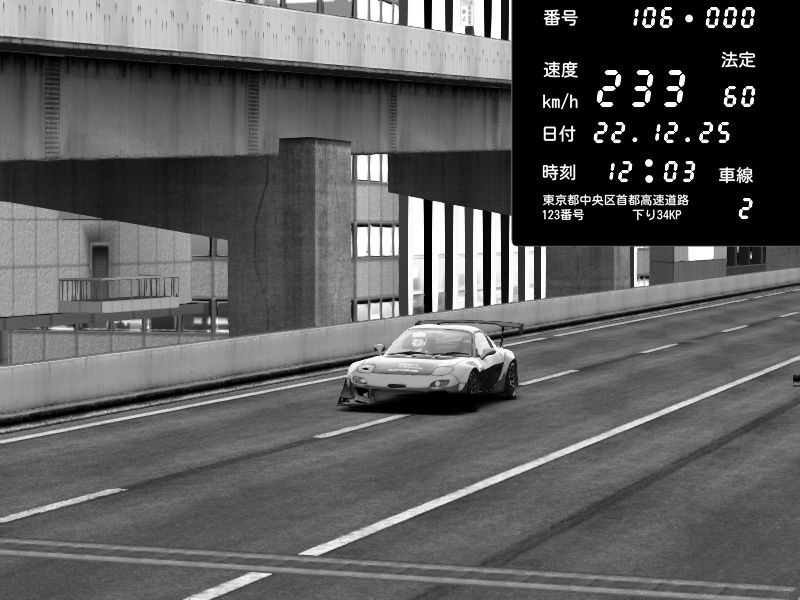 | 2025/12/22 12:22 | C1外回り 京橋 | 279 / 60 km/h | Mazda RX-7 FD3S FEED Afflux GT3 | CAPTURE |