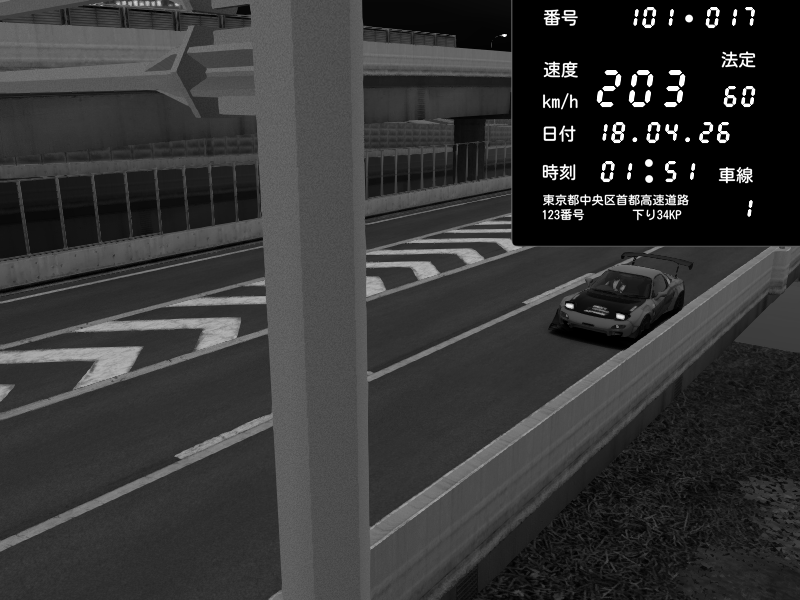| 2026/04/18 01:51 | C1内回り 竹橋JCT | 203 / 60 km/h | Mazda RX-7 FD3S FEED Afflux GT3 | CAPTURE |