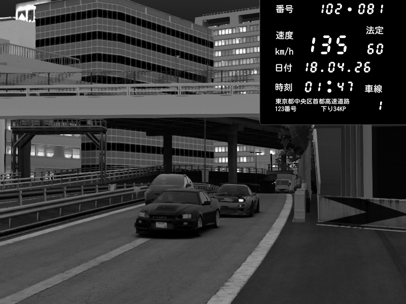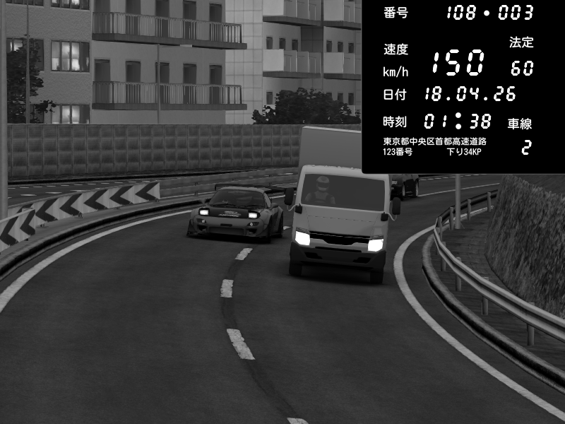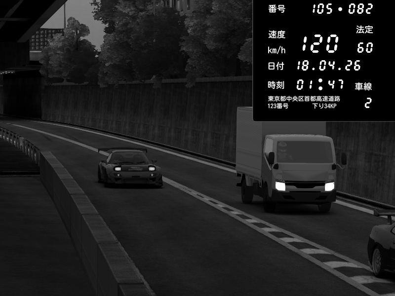 | 2026/04/18 01:47 | C1外回り 新富町 | 135 / 60 km/h | Mazda RX-7 FD3S FEED Afflux GT3 | CAPTURE |