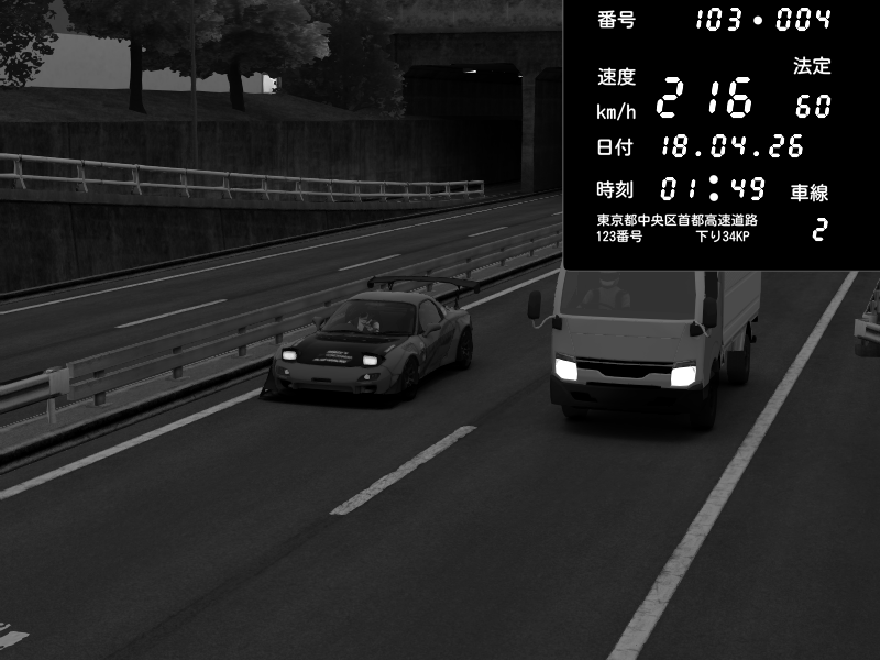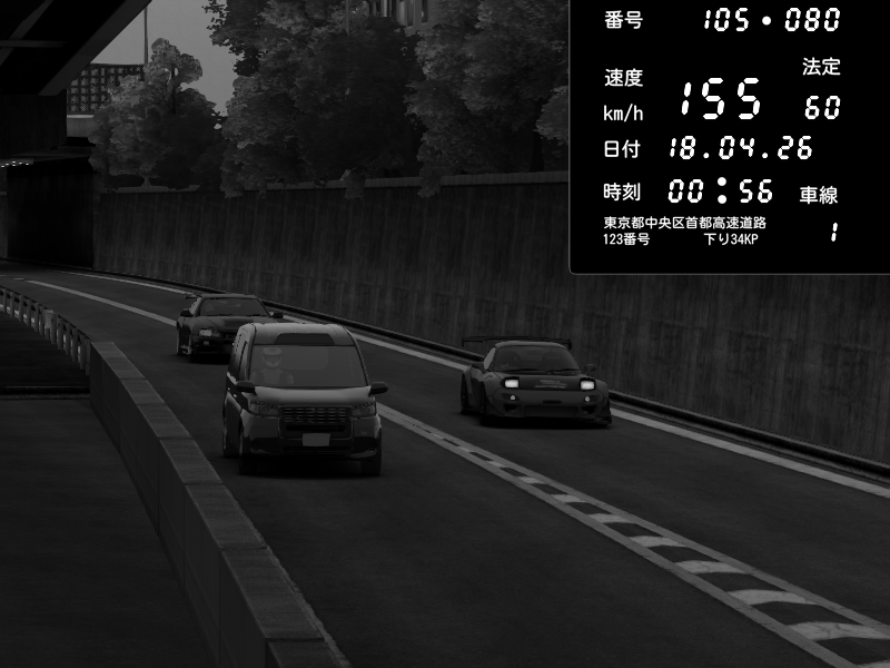 | 2026/04/18 01:49 | C1内回り 銀座 | 216 / 60 km/h | Mazda RX-7 FD3S FEED Afflux GT3 | CAPTURE |