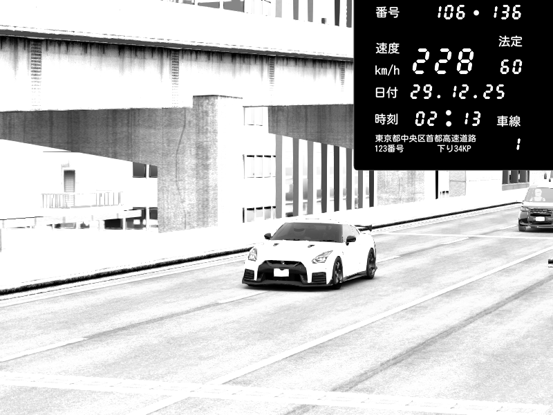 | 2025/12/29 02:13 | 9号下り 木場 | 228 / 60 km/h | Nissan GT-R NISMO 2017 | CAPTURE |