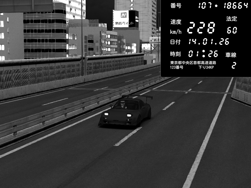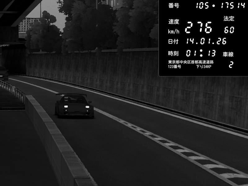 | 2026/01/14 01:13 | C1外回り 京橋 | 276 / 60 km/h | Mazda RX-7 FD3S FEED Afflux GT3 | CAPTURE |