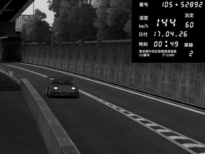 | 2026/04/17 00:49 | C1外回り 京橋 | 144 / 60 km/h | Mazda RX-7 FD3S FEED Afflux GT3 | CAPTURE |