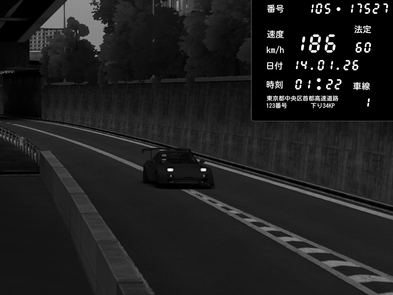 | 2026/01/14 01:22 | C1外回り 京橋 | 186 / 60 km/h | Mazda RX-7 FD3S FEED Afflux GT3 | CAPTURE |
