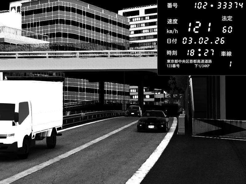| 2026/02/03 18:27 | C1外回り 新富町 | 121 / 60 km/h | Nissan Skyline GT-R R34 Nismo Omori Factory S1 | CAPTURE |