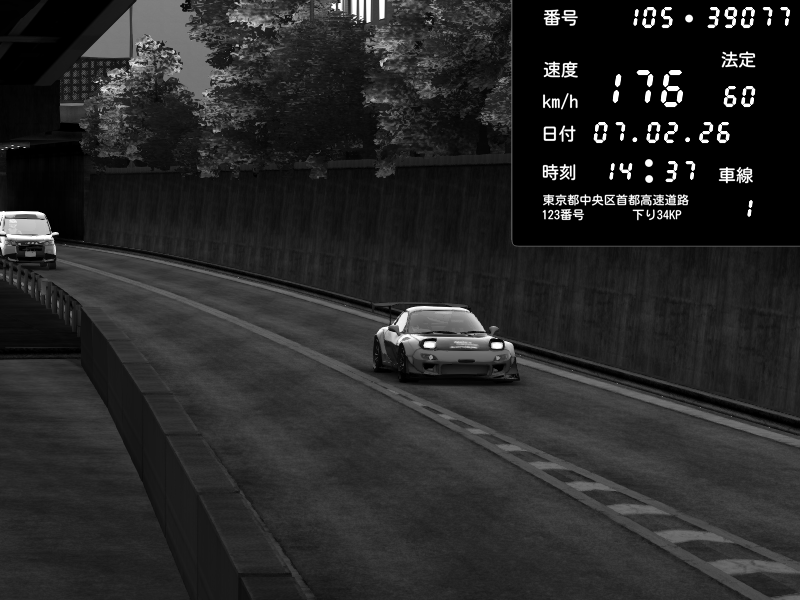 | 2026/02/07 14:37 | C1外回り 京橋 | 176 / 60 km/h | Mazda RX-7 FD3S FEED Afflux GT3 | CAPTURE |