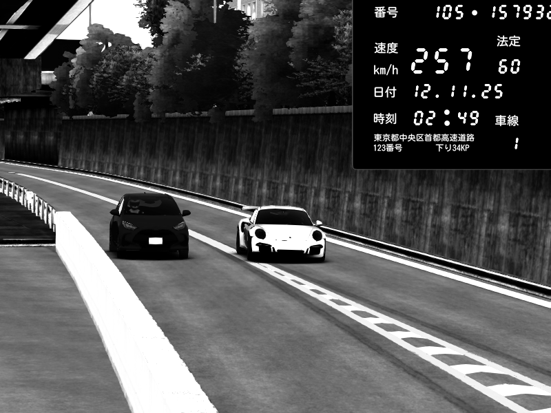 | 2025/11/12 02:49 | C1外回り 京橋 | 257 / 60 km/h | Porsche 911 GT3 RS | CAPTURE |