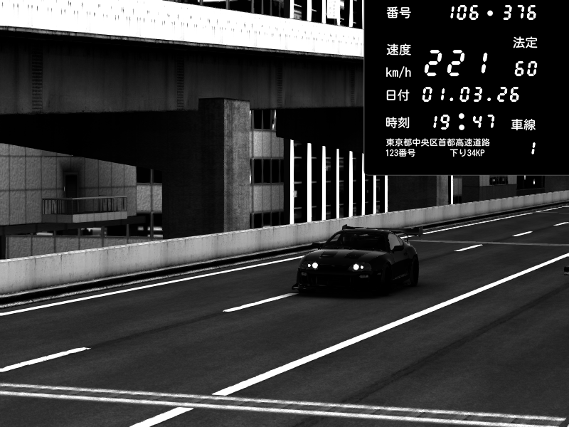 | 2026/03/01 19:43 | C1内回り 竹橋JCT | 163 / 60 km/h | Toyota Supra MKIV Time Attack | CAPTURE |