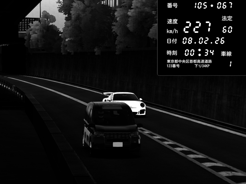 | 2026/02/08 00:34 | C1外回り 京橋 | 227 / 60 km/h | Porsche 911 GT3 RS | CAPTURE |