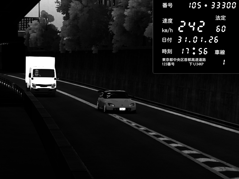 | 2026/01/31 17:56 | C1外回り 京橋 | 242 / 60 km/h | Honda S2000 (AP2 - Legendary) | CAPTURE |