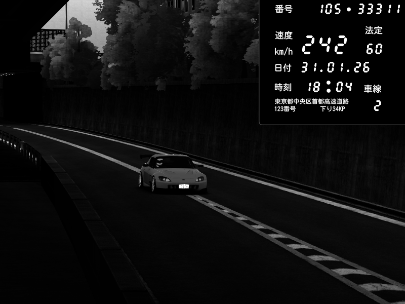 | 2026/01/31 18:04 | C1外回り 京橋 | 242 / 60 km/h | Honda S2000 (AP2 - Legendary) | CAPTURE |