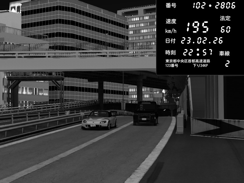 | 2026/02/23 23:02 | C1外回り 新富町 | 197 / 60 km/h | Honda S2000 (AP2 - Legendary) | CAPTURE |
