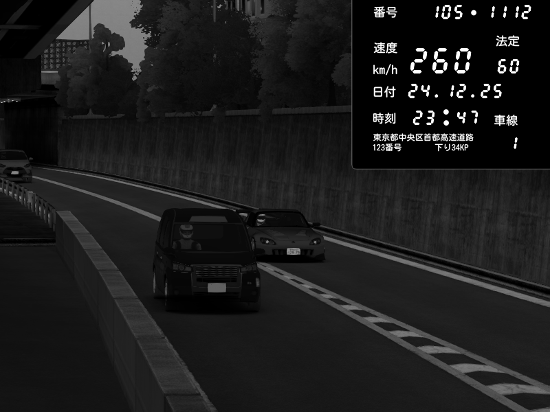 | 2025/12/24 23:47 | C1外回り 新富町 | 112 / 60 km/h | Honda S2000 (AP2 - Legendary) | CAPTURE |