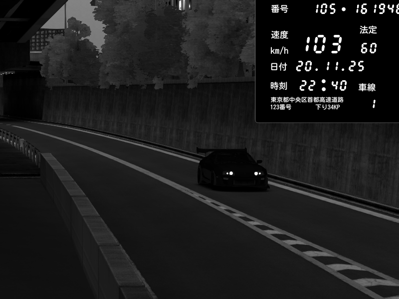 | 2025/11/20 22:13 | C1外回り 京橋 | 106 / 60 km/h | Toyota Supra MKIV Time Attack | CAPTURE |
