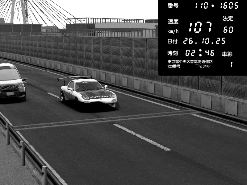 | 2025/10/26 02:46 | K1上り 羽田 | 107 / 60 km/h | Mazda RX-7 FD3S RE Amemiya | CAPTURE |