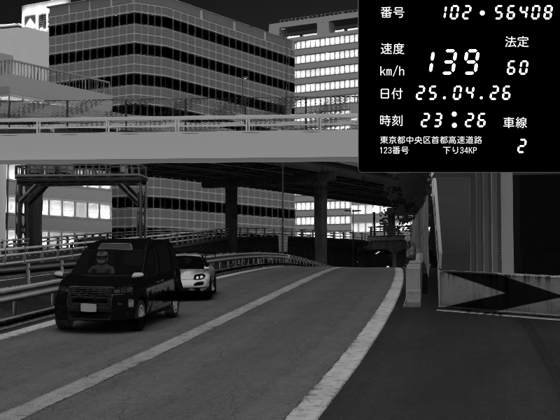 | 2026/04/25 22:54 | C1外回り 京橋 | 243 / 60 km/h | Nissan GT-R NISMO 2017 | CAPTURE |