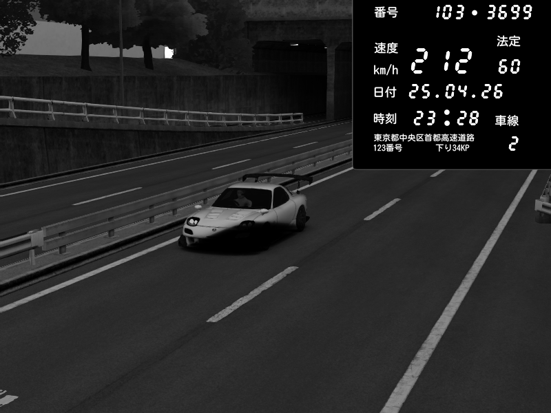 | 2026/04/25 23:28 | C1内回り 銀座 | 212 / 60 km/h | Mazda RX-7 FD3S RE Amemiya | CAPTURE |
