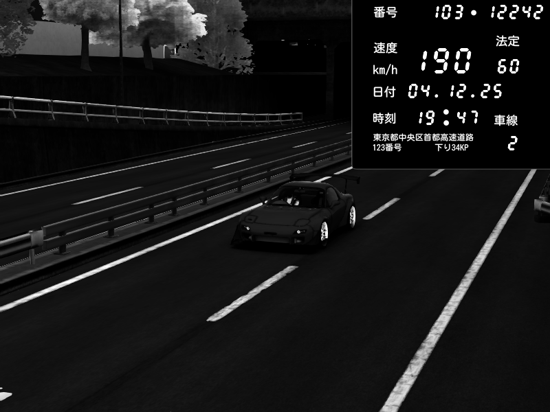 | 2025/12/04 19:47 | C1内回り 銀座 | 190 / 60 km/h | Mazda RX-7 FD3S FEED Afflux GT3 | CAPTURE |