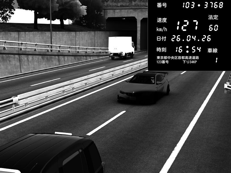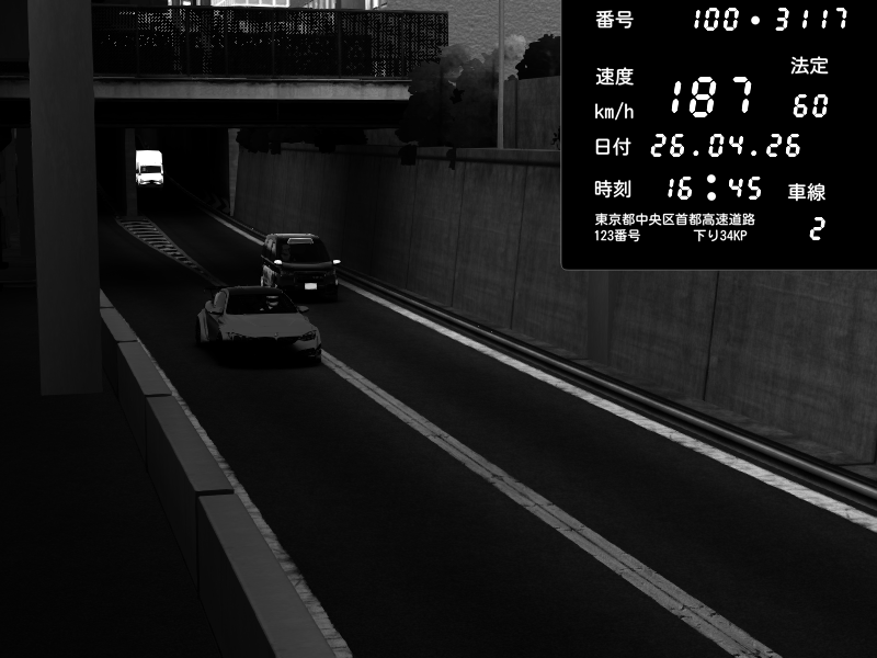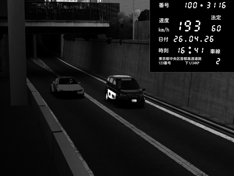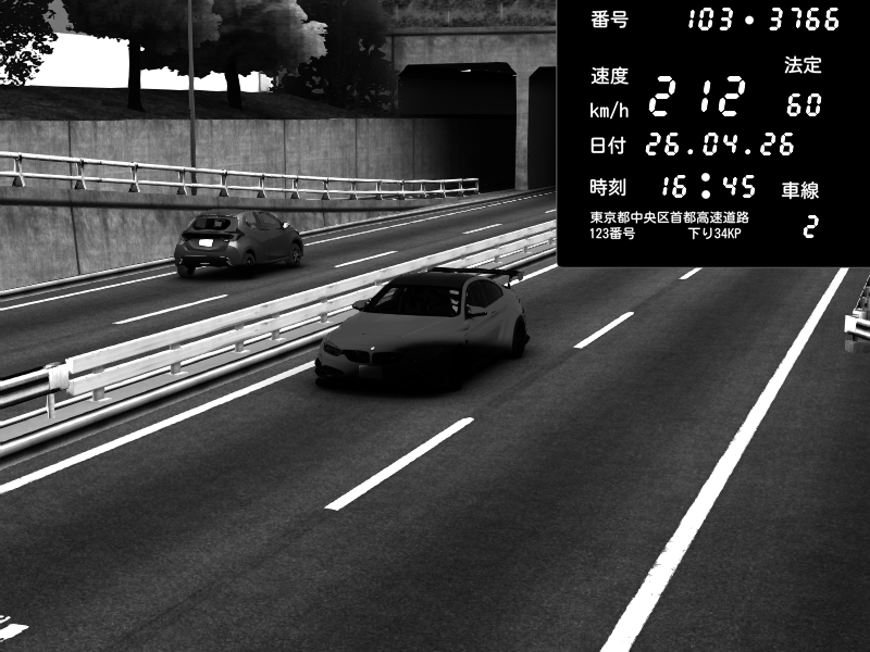 | 2026/04/26 16:41 | C1内回り 京橋 | 193 / 60 km/h | BMW M4 crash.Sp Varis Widebody | CAPTURE |