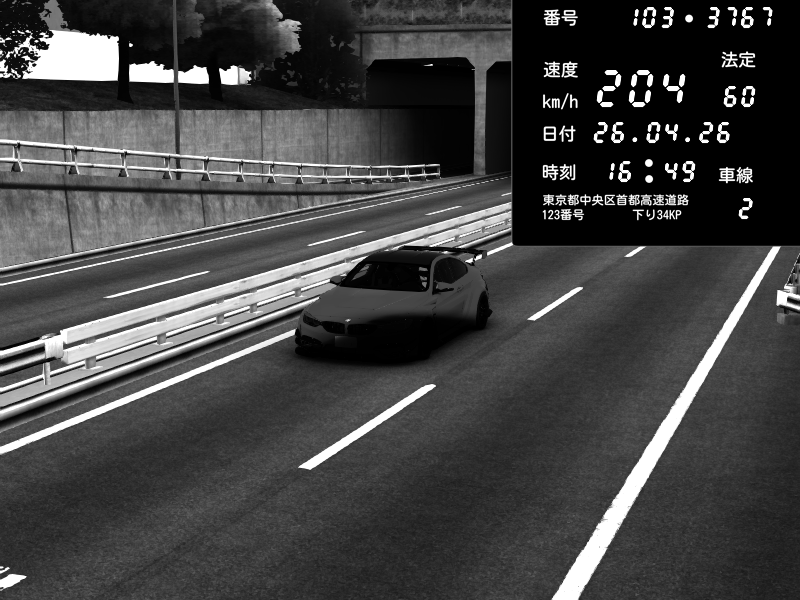 | 2026/04/26 16:49 | C1内回り 銀座 | 204 / 60 km/h | BMW M4 crash.Sp Varis Widebody | CAPTURE |