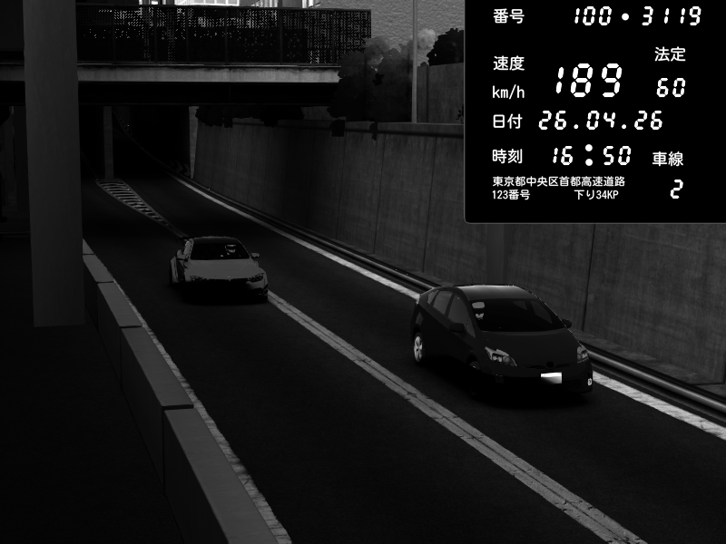 | 2026/04/26 16:50 | C1内回り 京橋 | 189 / 60 km/h | BMW M4 crash.Sp Varis Widebody | CAPTURE |