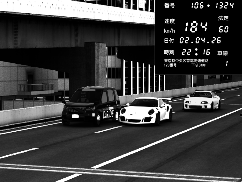 | 2026/04/02 22:16 | 9号下り 木場 | 184 / 60 km/h | Porsche 911 GT3 RS | CAPTURE |